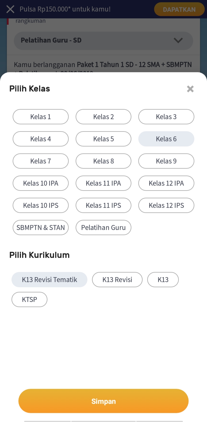 Keunggulan lainnya adalah biaya yang ditawarkan sangat terjangkau. Harga paket berlangganannya mulai dari Rp 250.000. beda banget dengan harga yang ditawarkan oleh bimbingan konvensional yang bisa mencapai puluhan juta. Paketnya dijamin lengkap deh, mulai dari jenjang SD, SMP, dan SMA. Kurikulum materinya pun menggunakan kurikulum nasional seperti KTSP, Kurikulum 2013, Kurikulum 2013 revisi, dan Kurikulum 2013 revisi tematik. Jadi gak perlu khawatir kalau materi pelajaran yang ada di Ruangbelajar berbeda dengan yang diajarkan di sekolah kamu.